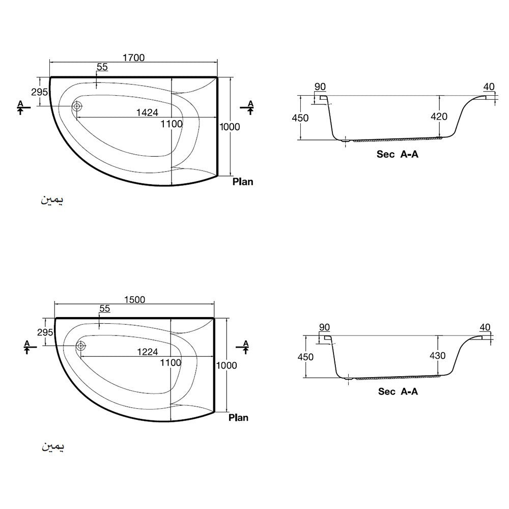 بانيو بلان 170 × 110 سم من أيديال ستاندرد