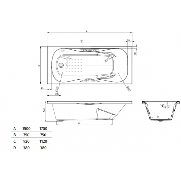 بانيو جاردا 0010036 بالمقابض مقاس 170 × 75 سم من سانيبيور