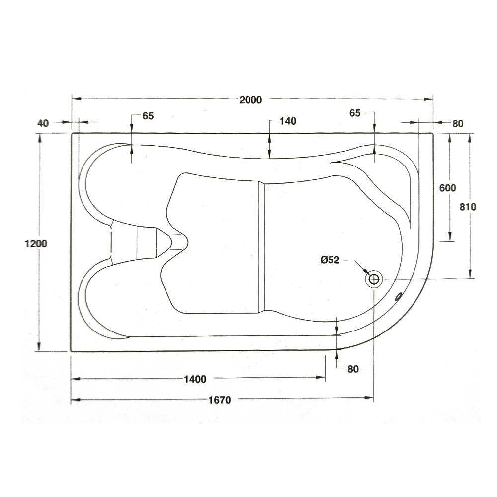 بانيو دويتو 800623 - 800631 مقاس 200 × 120 × 44 سم يمين أو شمال من ديورافيت