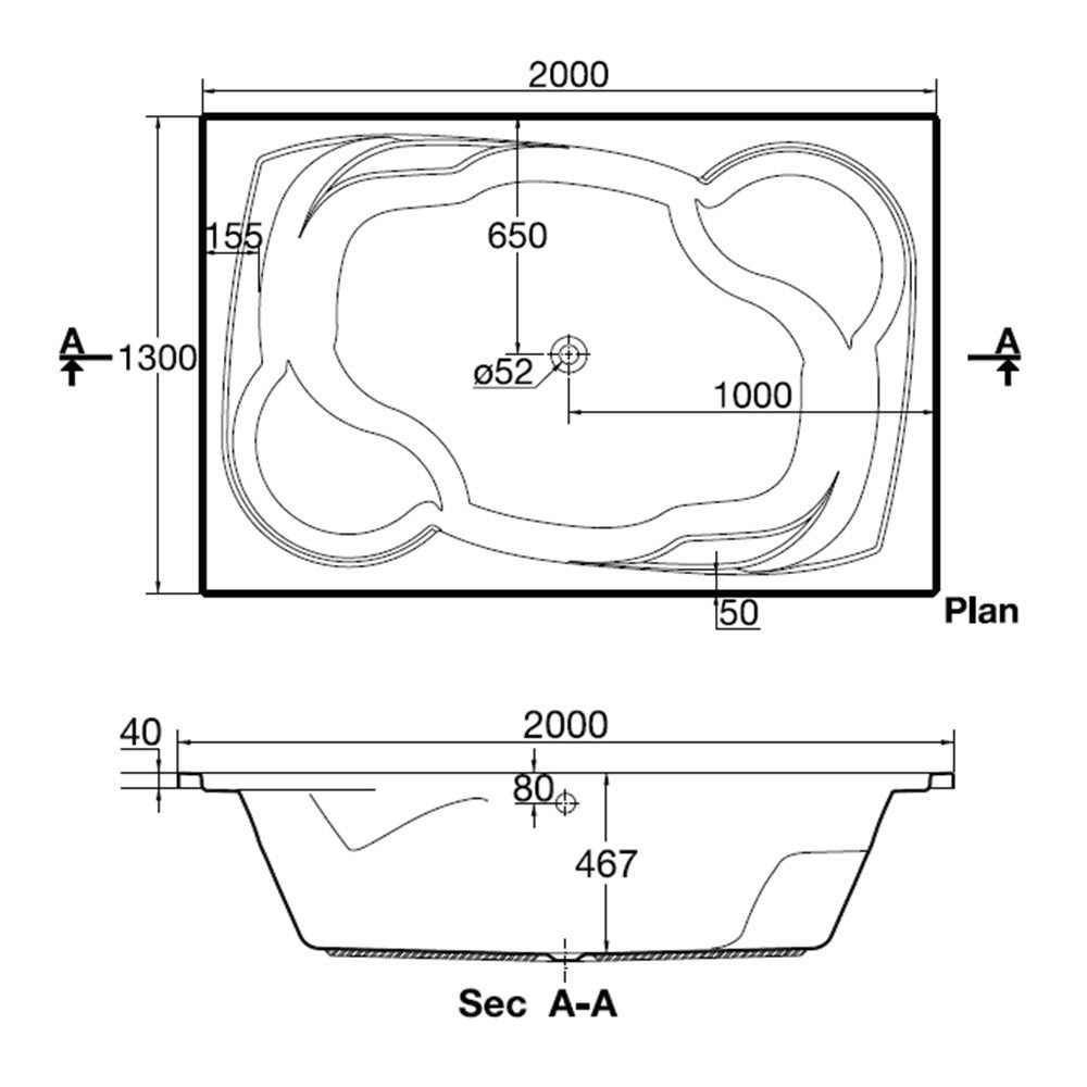 بانيو رى يونيون 200 × 130 سم بالطابق من أيديال ستاندرد