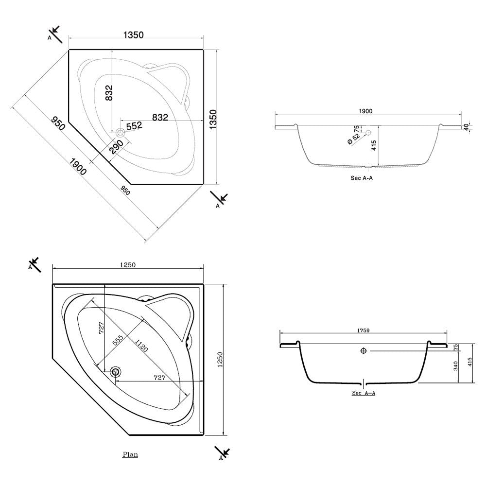 بانيو كونتور 125 × 125 سم من أيديال ستاندرد