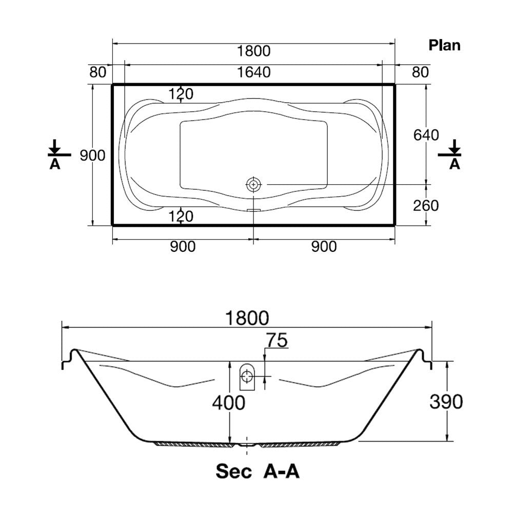 بانيو كيميرا 180 × 90 سم من أيديال ستاندرد