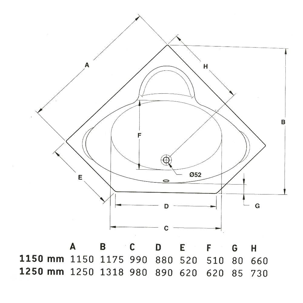 بانيو ميامى 800184 مقاس 115 × 115 × 39.5 سم من ديورافيت
