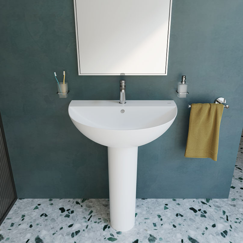 حوض تايتن 037480 بالفايظ بفتحة للخلاط بالعامود المقاس 80 × 50 سم من ساني بيور