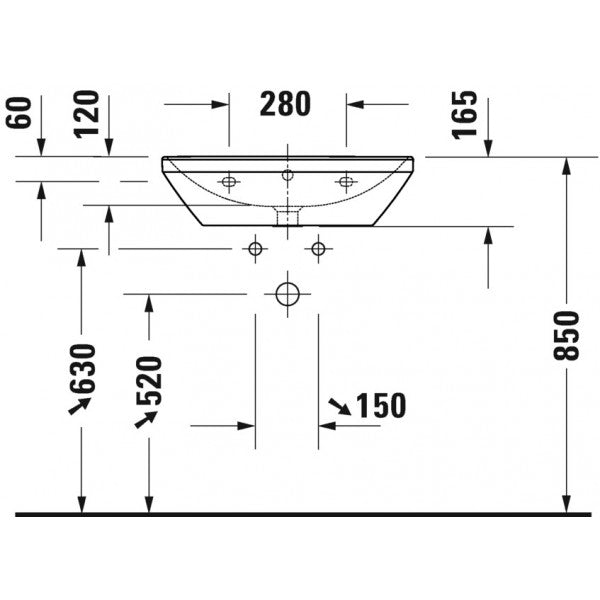 حوض دى نيو 236660 مقاس 60 سم بالعامود نصف ركبة بالفايظ و بفتحة للخلاط اللون أبيض من ديورافيت