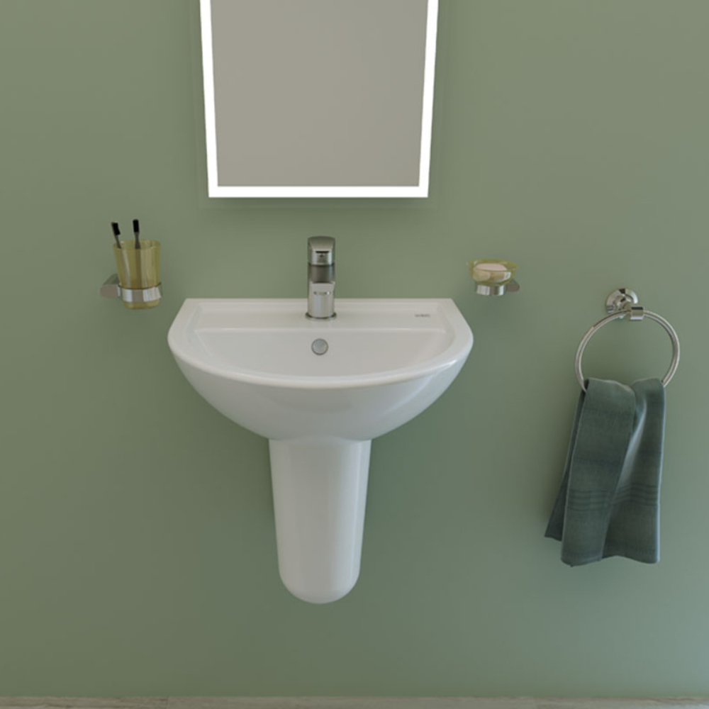 حوض روزيتا 034445 بالفايظ و بفتحة للخلاط وبعامود نصف ركبة مقاس 45 × 36.5 سم من ساني بيور