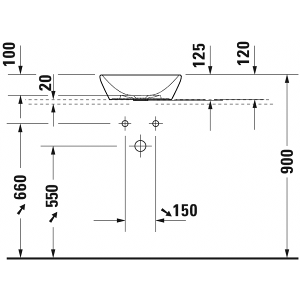 حوض فوق سطح أفقى دى نيو 237140 دائرى مقاس 40 سم بدون فايظ و بدون فتحة للخلاط اللون أبيض من ديورافيت