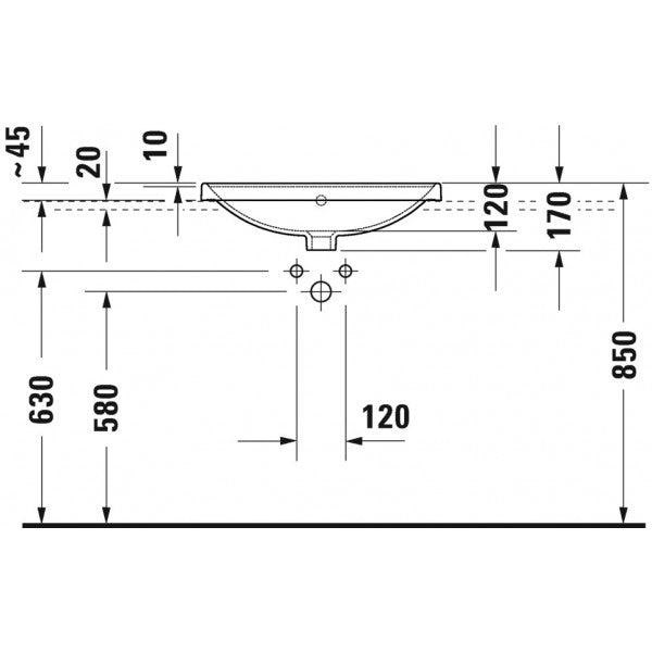 حوض كونترتوب دى نيو 035760 مقاس 60 سم بدون فايظ و بفتحة للخلاط اللون أبيض من ديورافيت