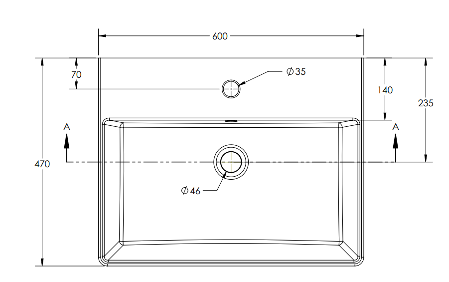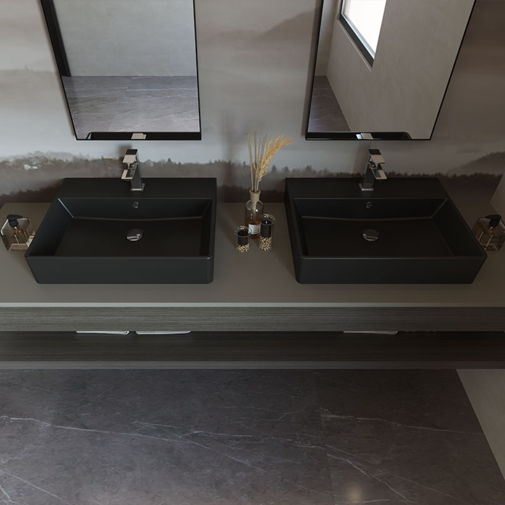 حوض كيبلر يثبت فوق سطح أفقى 041960 بالفايظ بفتحة للخلاط مقاس 60 × 47 سم اللون أسود من ساني بيور