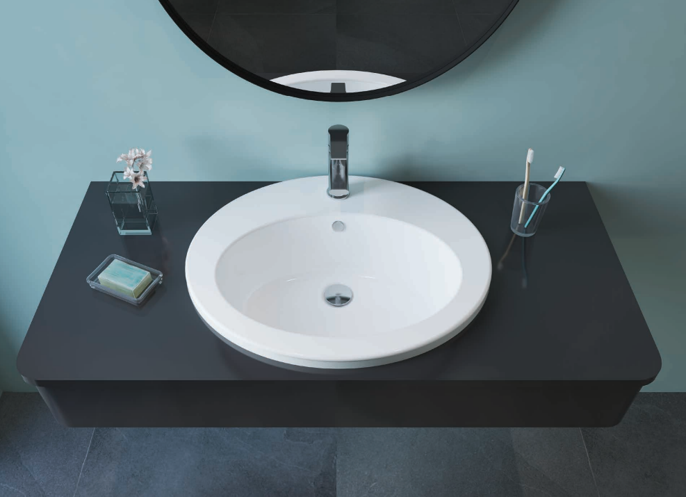 حوض ساترن فوق سطح افقي 038960 بالفايظ وبفتحة للخلاط مقاس 60 × 50 سم اللون أبيض من ساني بيور