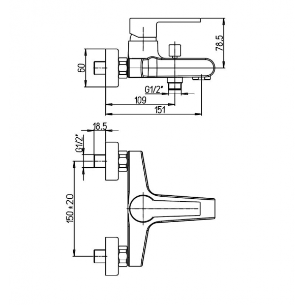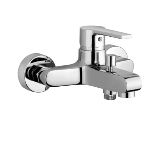 خلاط بانيو فيرونا VE5230000E10 تركيب حائطى بالمحول قلب سيراميك بمحدد درجة حرارة و مقبض للتحكم فى المياة و منظم لتوفير المياة و فلتر سهل التنظيف اللون كروم من ديورافيت