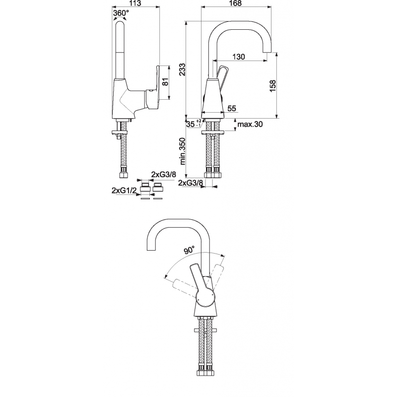 خلاط حوض أيديال ستريم بقنطرة عالية متحركة B 1263 AA (BC980AA) اللون كورم من أيديال ستاندرد