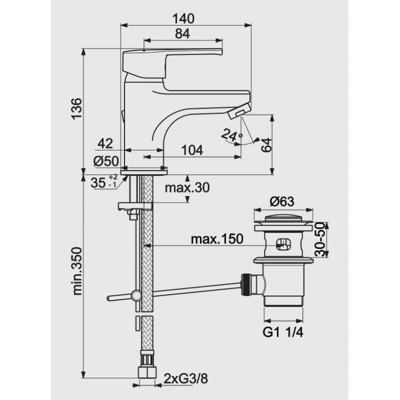 خلاط حوض أيديال ستريم قلب سيراميك بطابق وفايظ B1262AA (BC947AA) اللون كورم من أيديال ستاندرد
