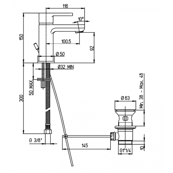 خلاط حوض اكوا AQ1010001E10 بالفيداج 9 سم و قلب سيراميك بمحدد درجة الحرارة و منظم لتوفير المياة و فلتر سهل التنظيف اللون كروم من ديورافيت