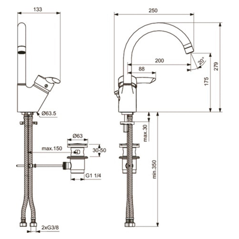 خلاط حوض عالى يوروستورم B 7835 AA بيد واحدة للتحكم فى المياة بقنطرة عالية متحركة اللون كروم من أيديال ستاندرد