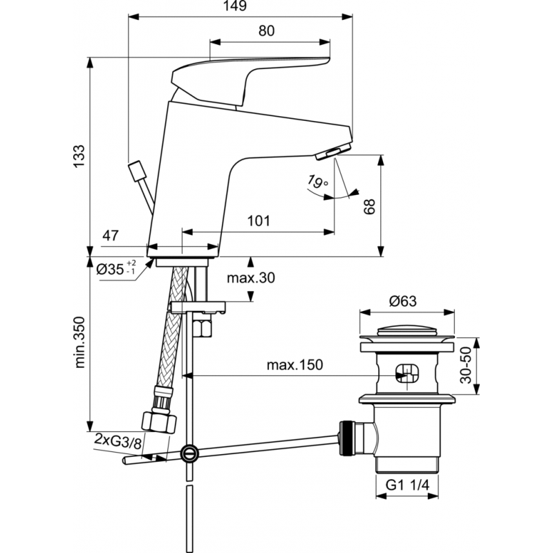 خلاط حوض نيو سيرافليكس B 1708 AA اللون كروم من أيديال ستاندرد
