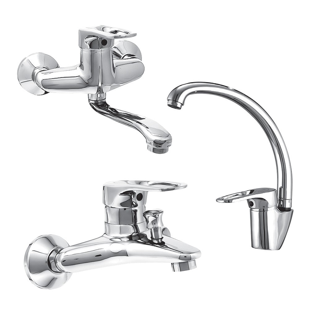 طقم خلاطات سيراميكس ( خلاط حوض GX-0069 و خلاط بانيو GX-0065 و خلاط مطبخ حائطى GX-0067 ) اللون كروم من جواد