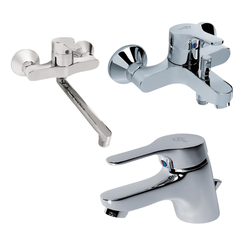 طقم خلاط 3 قطعة ( خلاط حوض B8577AA خلاط بانيو B8587AA خلاط مطبخ B8599AA ) اللون كروم من أيديال ستاندرد