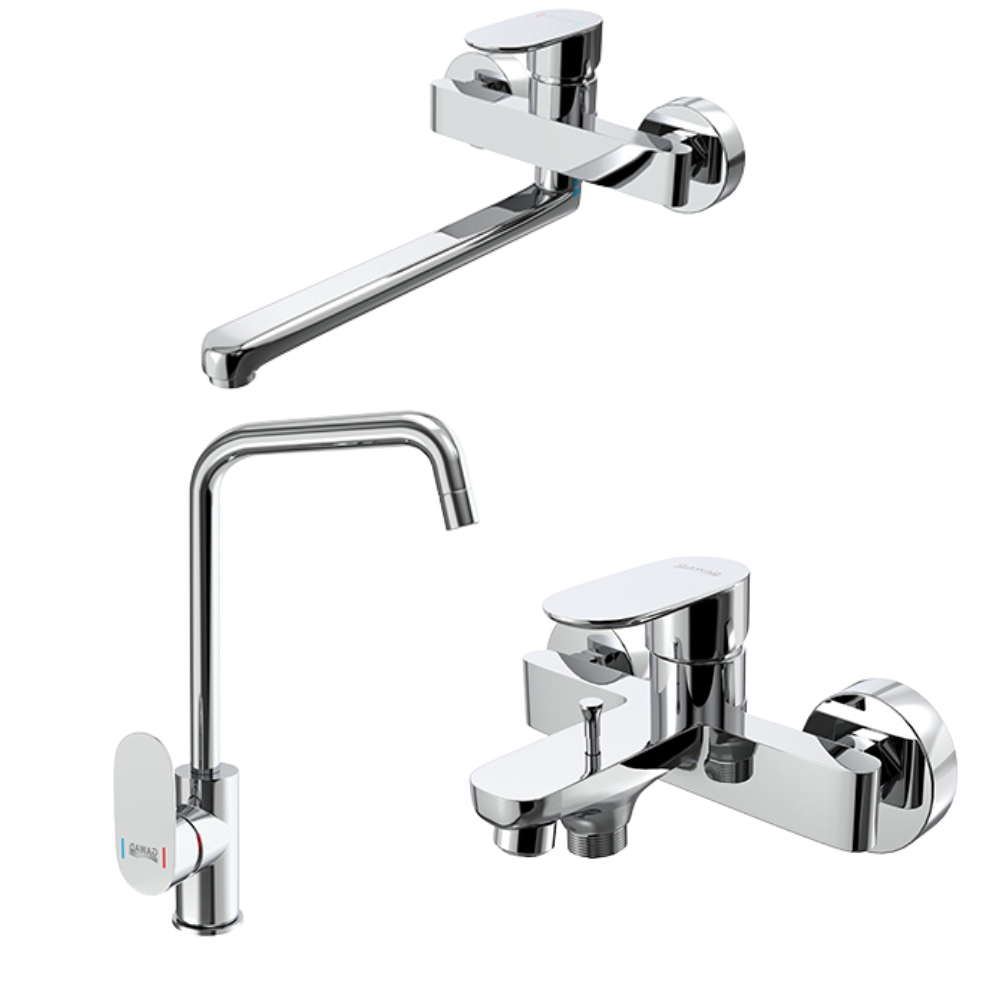 طقم خلاط 3 قطع ( خلاط بانيو ليدو LID-0055 خلاط حوض عالى شجرة ليدو LID-0059 خلاط مطبخ حائطى ليدو LID-0057 ) اللون كروم من جواد