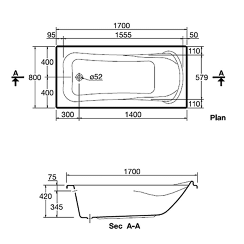 بانيو كيميرا 170 × 80 سم من أيديال ستاندرد