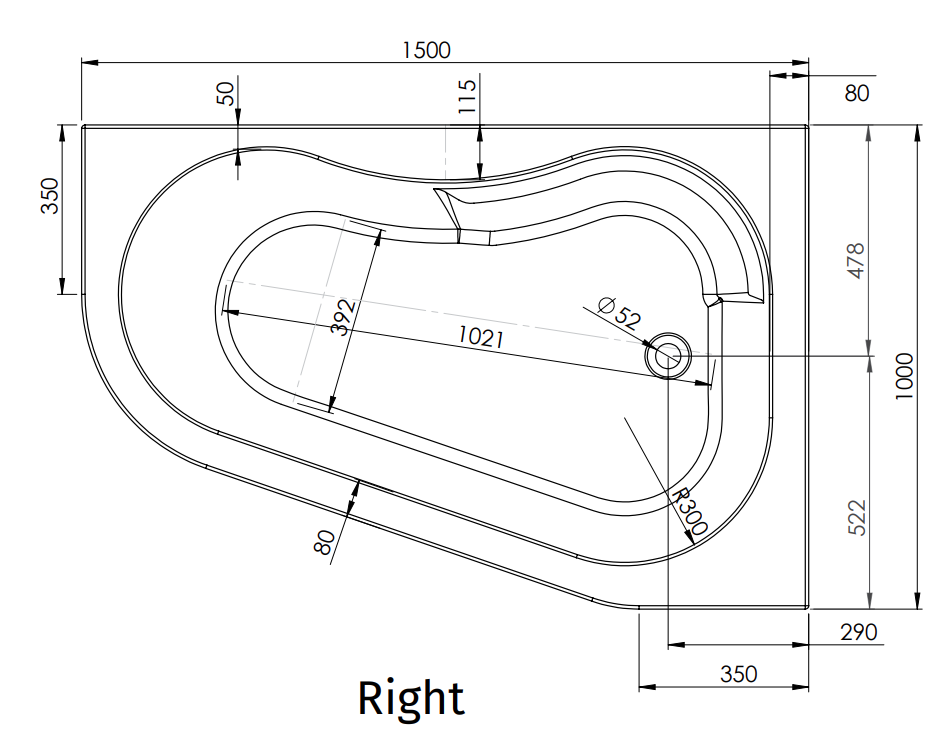 بانيو لوك 0010017 إتجاه يمين 150 × 100 سم من ساني بيور