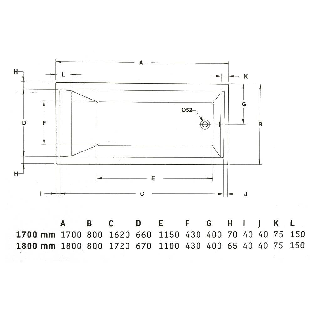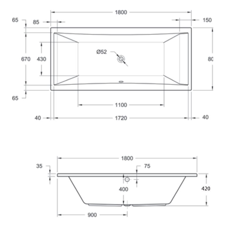 بانيو هافانا 800680 مقاس 180 × 80 × 42 سم فتحة الصرف فى المنتصف بالمخدة من ديورافيت