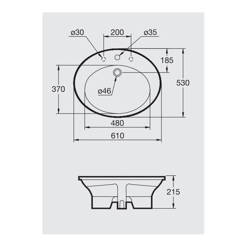 حوض افالوكس G0800 مقاس 61 × 53 سم أيديال ستاندرد