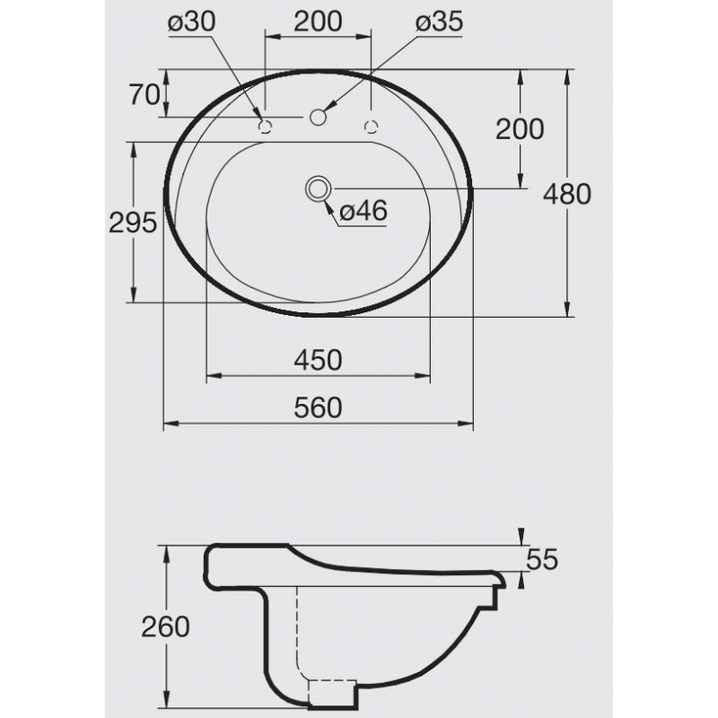 حوض ايزيس كونترتوب G0600 مقاس 56 × 48 سم أيديال ستاندرد