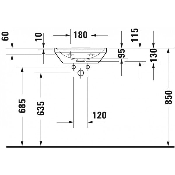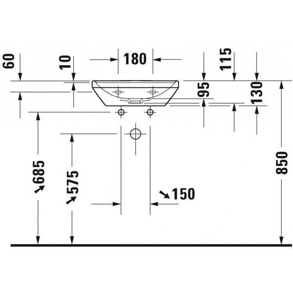 حوض دى نيو 073845 مقاس 45 سم بالعامود الطويل بالفايظ و بفتحة للخلاط اللون أبيض من ديورافيت