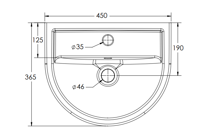 حوض روزيتا 034445 بالفايظ و بفتحة للخلاط وبعامود نصف ركبة مقاس 45 × 36.5 سم من ساني بيور