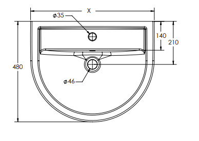 حوض روزيتا 034555 بالفايظ بفتحة للخلاط نصف ركبة مقاس 55 × 48 سم من ساني بيور