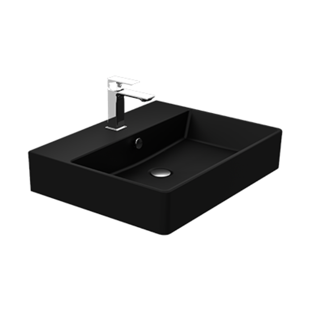 حوض كيبلر يثبت فوق سطح أفقى 041960 بالفايظ بفتحة للخلاط مقاس 60 × 47 سم اللون أسود من ساني بيور