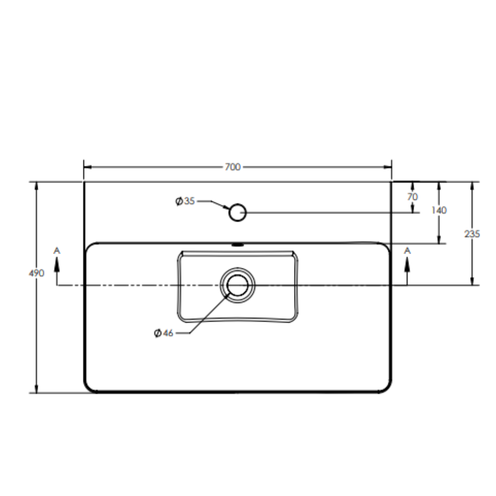 حوض كيبلر 041970 بالفايظ بفتحة للخلاط مقاس 70 × 49 سم نصف ركبة من ساني بيور
