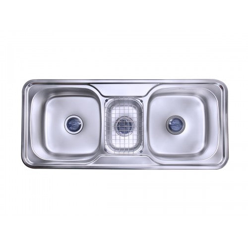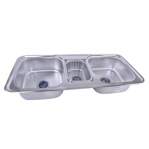 حوض مطبخ HS110D بعدد 2 عين ونصف ستانليس ستيل مقاس 110 × 48 سم مع سلة صغيرة بفلتر حاجز للشوائب بـ 3 صرف 3 بوصة منتج مستورد كورى من بيورتى