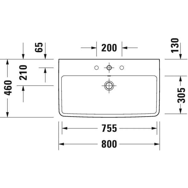 حوض وحدة موبيليا ديورافيت نمبر وان 2375800000 مقاس 80 × 46 سم بفتحة للخلاط و للفايظ اللون أبيض من ديورافيت
