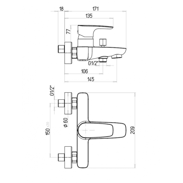 خلاط بانيو سيينا SI5230000E10 تركيب حائطى بالمحول قلب سيراميك بمحدد درجة الحرارة ومنظم لتوفير المياة اللون كروم من ديورافيت