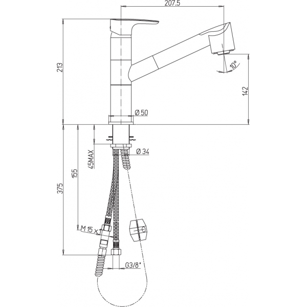 خلاط مطبخ شجرة سيينا SI6010001E10 بسماعة متحركة بطول 20 سم قلب سيراميك و منظم لتوفير المياة اللون كروم من ديورافيت