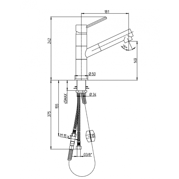 خلاط مطبخ شداد سكالا SC6010001E10 بسماعة 2 نظام متحركة قلب سيراميك بمحدد درجة الحرارة ومنظم لتوفير المياة اللون كروم من ديورافيت
