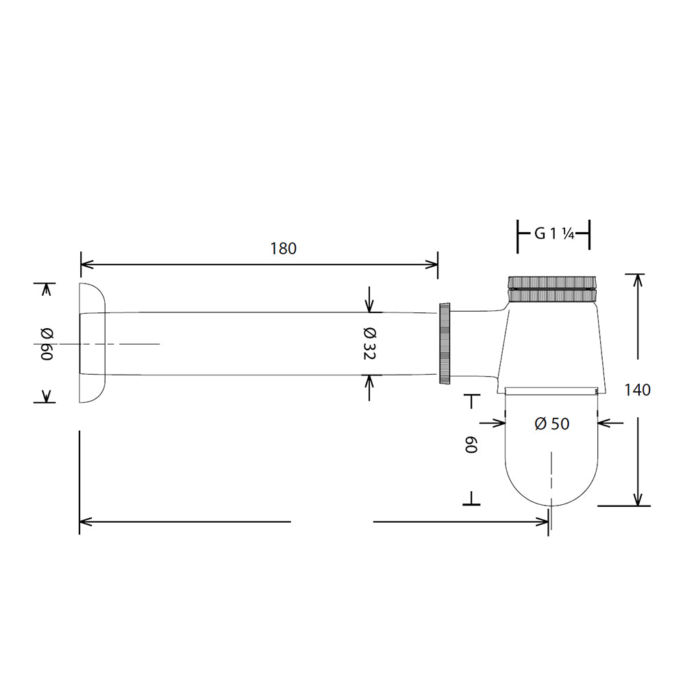 صرف حوض حمام ZA-005021 مقاس 1.25 بوصة بدون طابق 180 مم اللون كروم من جواد