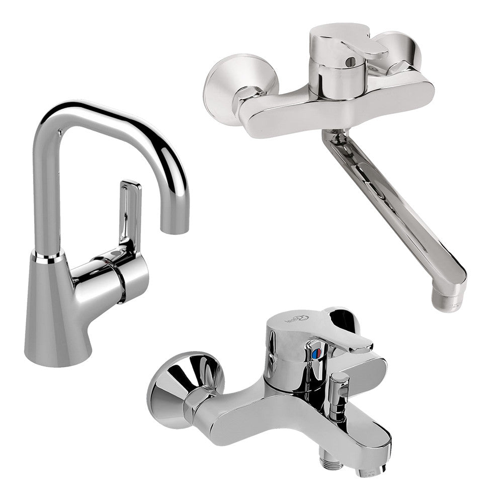 طقم خلاطات سليم لاين مع أيديال ستريم (خلاط بانيو B8587AA و خلاط حوض 1263 (BC980AA) و خلاط مطبخ حائطى B8599AA ) اللون كروم من أيديال ستاندرد