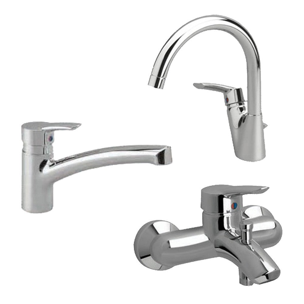طقم خلاطات يوروستورم ( خلاط بانيو B 7841 AA و خلاط حوض قنطرة عالية B 7835 AA و خلاط مطبخ B 7845 AA ) اللون كروم من أيديال ستاندرد