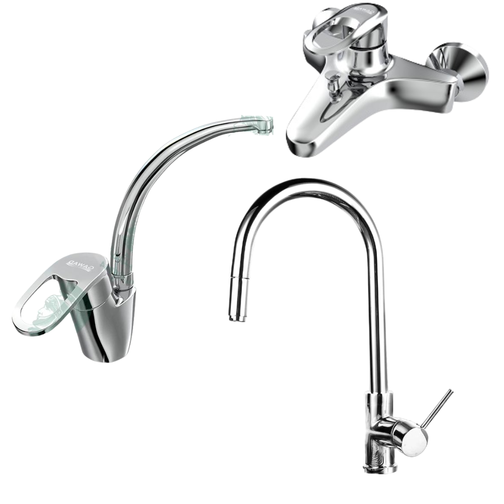 طقم خلاط 3 قطع ( خلاط بانيو سيراميكس GX-0065 خلاط حوض بلس GX-0079 خلاط مطبخ شداد سفيرو SO-0051 ) اللون كروم من جواد
