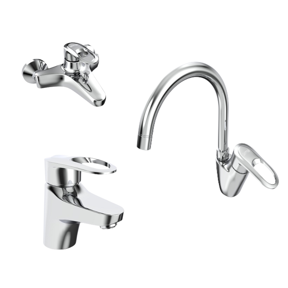 طقم خلاط 3 قطع ( خلاط بانيو سيراميكس GX-0065 و خلاط حوض سيراميكس GX-0064 و خلاط حوض سيراميكس GX-0060 ) اللون كروم من جواد