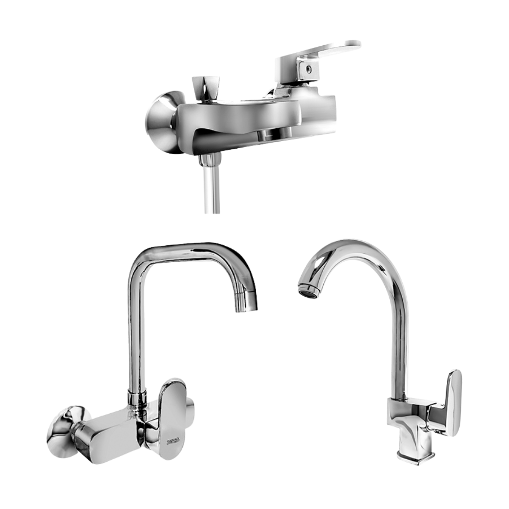 طقم خلاط 3 قطع ( خلاط بانيو لافادورا LVD-0015 و خلاط حوض لافادورا LVD-0019 و خلاط مطبخ حائطى لافادور LVD-0018 ) اللون كروم من جواد