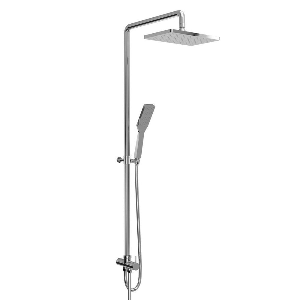 عامود دش 2 × 1 سيلف كلينج GX-00189 بالمحول و بطاسة مقاس 25 × 17 سم و سماعة 1 نظام وخرطوم مقاس 150 سم ضد الإلتفاف بعلاقة متحركة اللون كروم من جواد