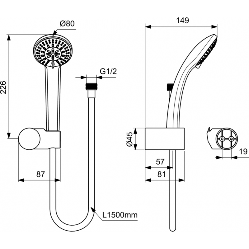 مجموعة سماعة أيديال رين B9507AA بسماعة 3 نظام مقاس 8 سم و خرطوم 150 سم ضد الإلتفاف و علاقة ثابتة اللون كروم من أيديال ستاندرد